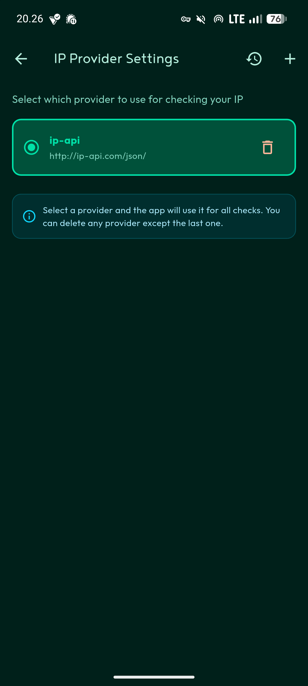The app lets you add custom IP lookup providers if you prefer specific services. Everything runs locally on your device, so your data stays with you.